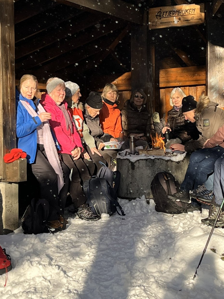 Kong Vinter hadde regien og serverte oss en flott snødekt skog, solen skinte fra en skyfri himmel og temperaturen lå rundt null. 40 glade turgåere koste seg i den flotte naturen. 10-15 cm nysnø var tung å vasse i, men ingen klaget over det tunge føret.
