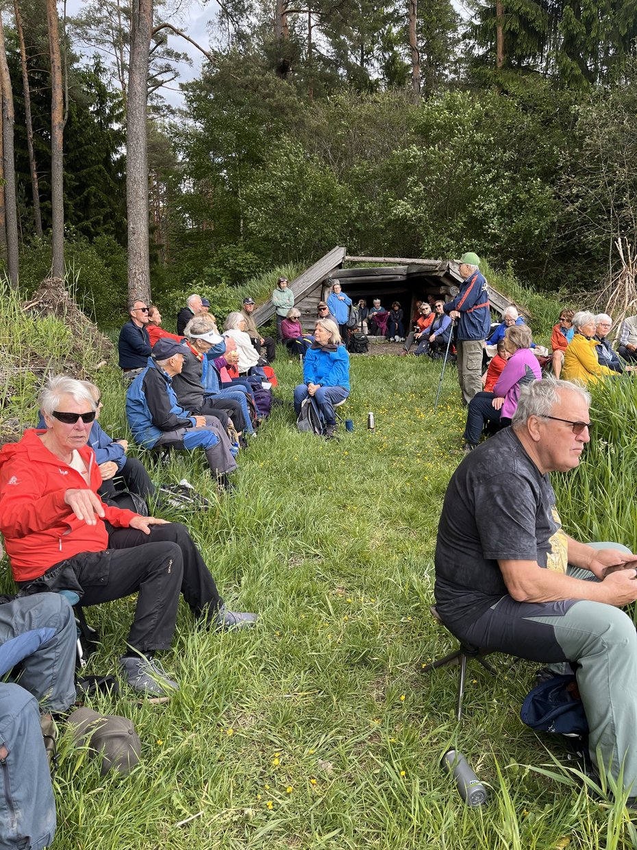 Niste, kaffe og en prat lokket oss videre ned til gapahuken på Stormyr. Her fikk vi besøk av Torbjørn Follaug som kunne fortelle oss historier fra oppveksten sin. I Leirkupp hadde han lært å svømme,fisketurer og om hvordan hele området hadde forandret seg opp gjennom årene.