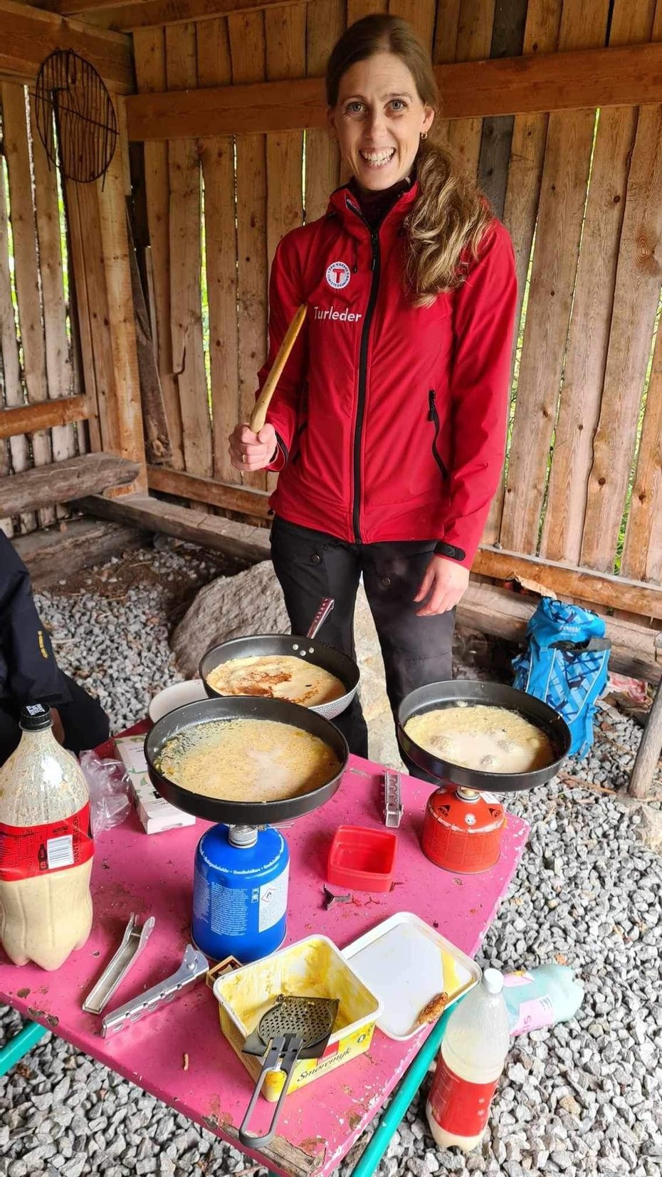 Store og små møttes på Leira stasjon og gikk/syklet inn til gapahuken ved Leira. Her rigget vi til med pannekaker og både selvplukket blåbær og medbrakt.