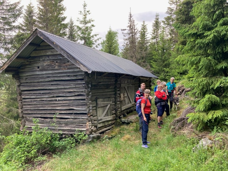 Ein tur til husmannsplassen Hamaren, er ein fin tur på graskledd skogsbilveg. Ikkje langt og passe bratt. Særs hyggeleg at vi denne ettermiddagen også hadde fått med oss ein ung kar, noko alle dei sju damene sette pris på.