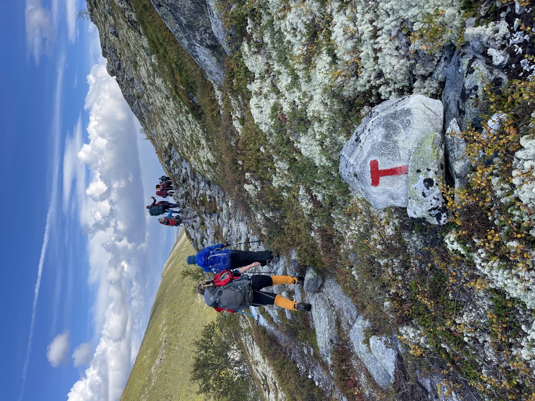 Herifra ble stien mer steinete og krevende. For en perle Bjørnhollia viste seg å være; hjemmekoselig, romslig og nyrestaurert. Her var det godt med en varm dusj, kald drikke og nydelig middag.