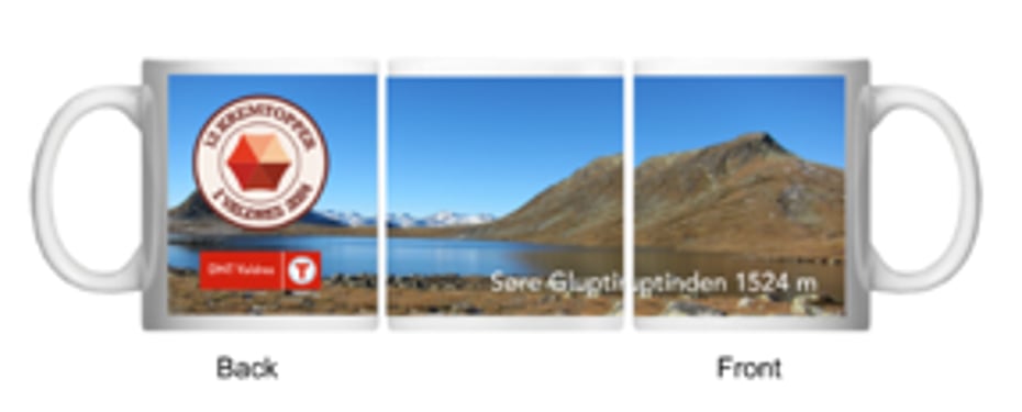Sjekk at du krysses av på lista. Årets krus har foto av Søre Gluptinden.