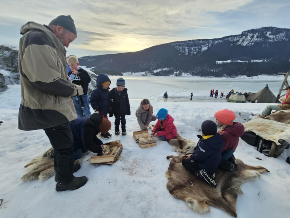 DNT Ung Valdres inviterte til isbading, bålhygge, pølsegrilling og tenning av bål ved Tingsteinen langs Slidrefjorden.