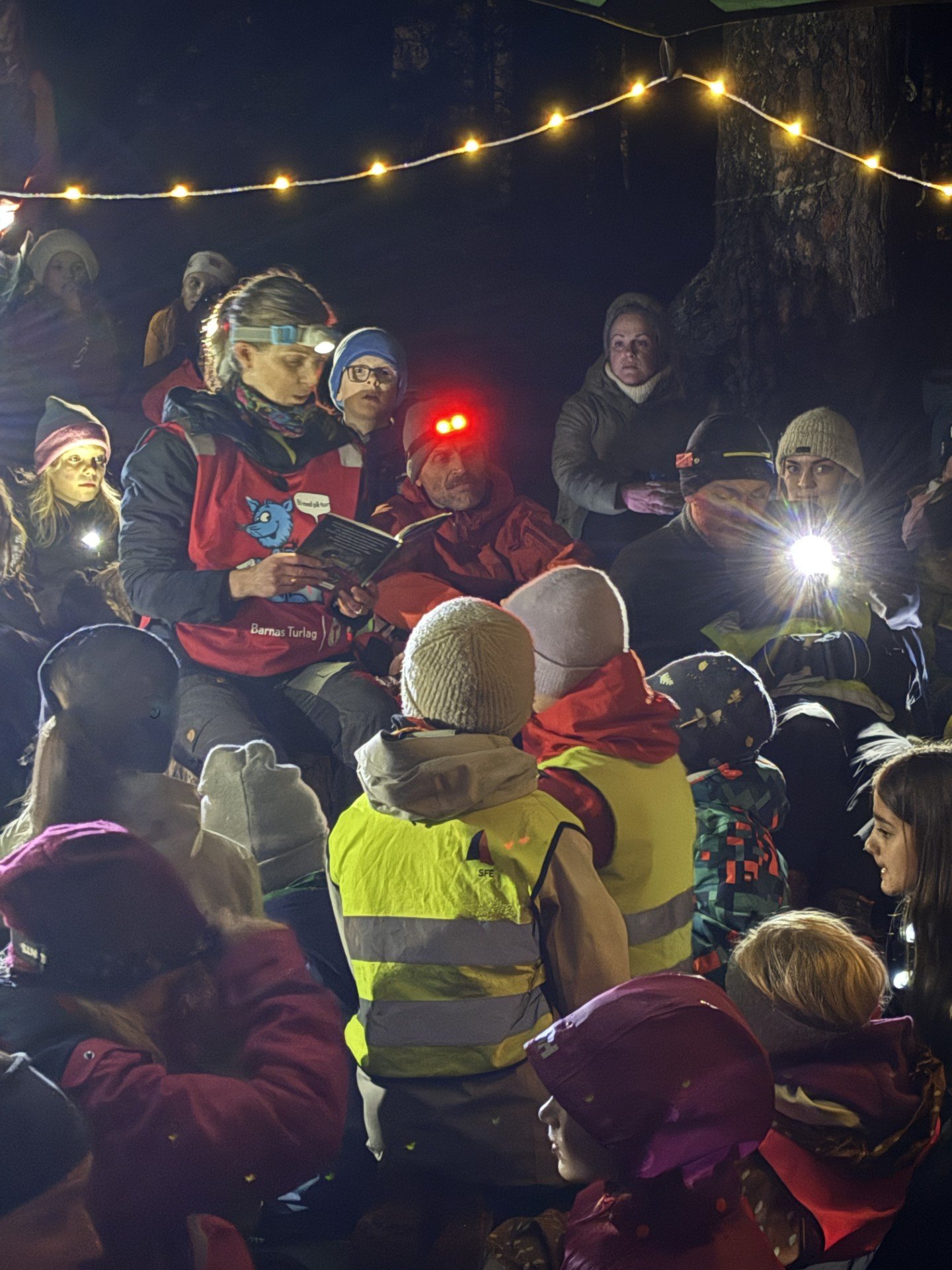 Når alle hadde fått seg noe varmt å drikke satte vi oss sammen for å høre på eventyr.. Vi hadde til og med funnet et eventyr om Nøkken og Huldra på Vesleøya. Alle var stille som mus mens eventyret ble lest opp. Plutselig dukket det opp noe i vannet… det ble hyl og skrik… det var nøkken som kom! Nøkken svømte litt rundt før han kom opp av vannet og avslørte hvem han var. De fleste unger var svært begeistret, mens noen synes det var litt for skummelt…