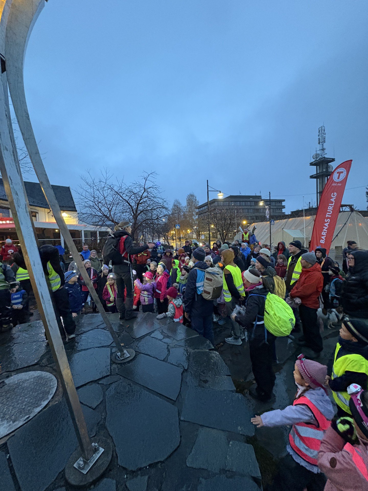 Vi håpet på et bra oppmøte, men vi ble noe overrasket over at ca 120 stk møtte opp for å kjenne på både spenning og frykt. Til og med NRK ville være med. Med så mange turglade folk måtte vi dele oss i to for at alle skulle få ta del i refleksløypa, så vi tok turen gjennom sentrum til Shell og videre ut på Vesleøya via strandpromenaden.