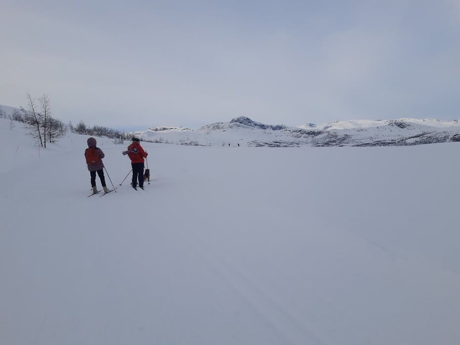 Vi hadde ein fin tur som vi anbefalar andre også å ta. Skiføret var svært godt, og på runden vår møtte vi ikkje så mange andre skiløparar før på den aller siste biten.