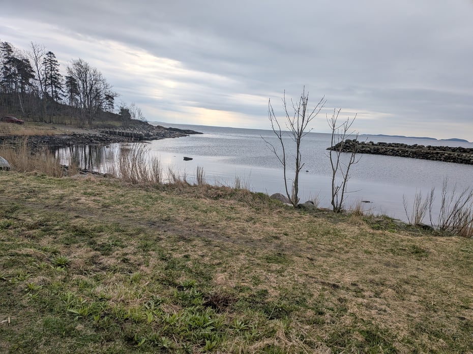 I dag gikk vi fra parkeringen i Karlsvika ned mot stranda og Karlsvikodden og nordover langs kyststien. Litt før Dyrnesodden tok vi av mot parkeringen ved Esso og fulgte stien mot Blixekilen, hvor lunsjen ble inntatt. Herfra gikk vi langs gjerdet og hovedstien forbi Karlsvika gård og til parkeringen