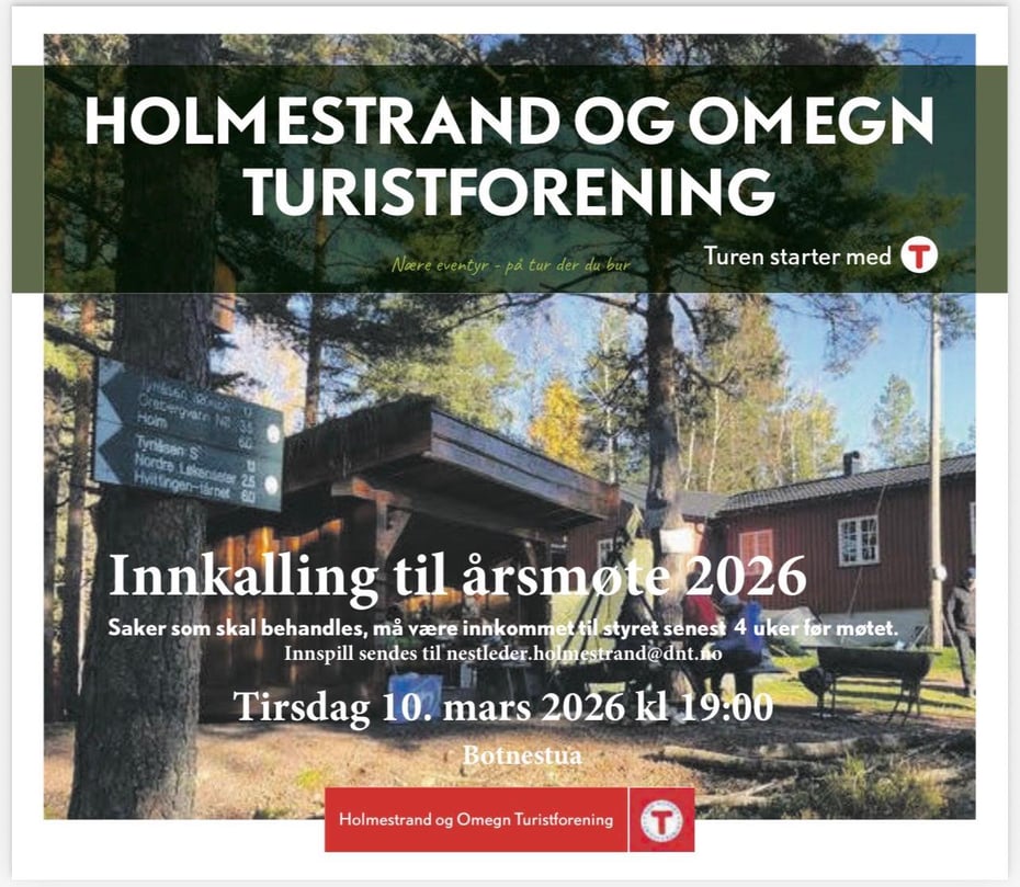 Velkommen til årsmøte for Holmestrand og Omegn Turistforening torsdag 20. mars.