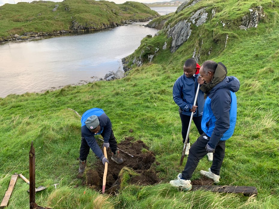 På stien opp til dagsturhytten har det stått rester av et gammelt gjerde. Denne dagen tok de fram spett, spade og grafse for å fjerne gjerdet som lett kunne ha skadet dyr eller turgåere. Gjerdet satt så godt fast at hele steinen måtte graves opp og justert på slik at de spisse restene av gjerdet ble godt dekket.