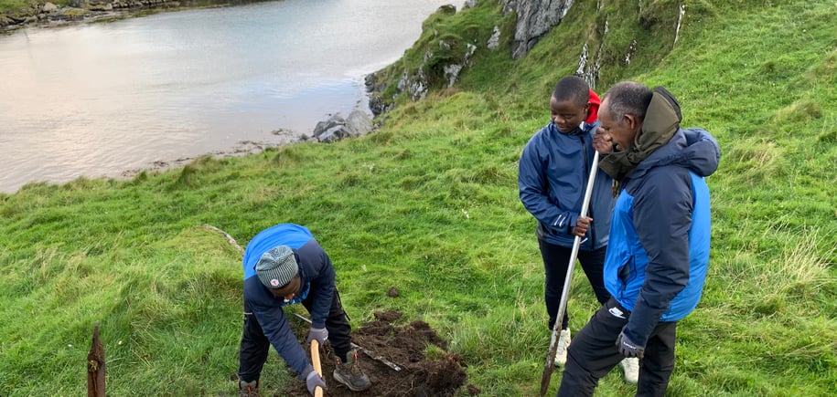 Etter frokost gikk vi på ski tilbake. Det var færre vanskelige sted underveis. Vi har falt mange ganger men det var bra. Vi måtte levere utstyr til kl. 4 og hadde retur kl. 6. Da vi ventet bussen på parkeringsplass (vi skulle gå til Oppheim busstoppen kl. 5), ble vi kjent med Knut, som har ansvar på dette sted. Vi satt på med Knut til Haugesund. Dette avslutter vårt lille eventyr. Til slutt vil jeg snakke litt om min erfaring. Planlegg alltid turen nøye. Ta med seg nok og litt mer utstyr og ting. Ikke vær redd for å være interessert og spør kunnskapsrike folk. Ha alltid en reserveplan.Vi er veldige takknemlige for hjelp vi har fått fra menneskene. Vi setter stor pris på varmen og vennlighet vi ble møtt med.