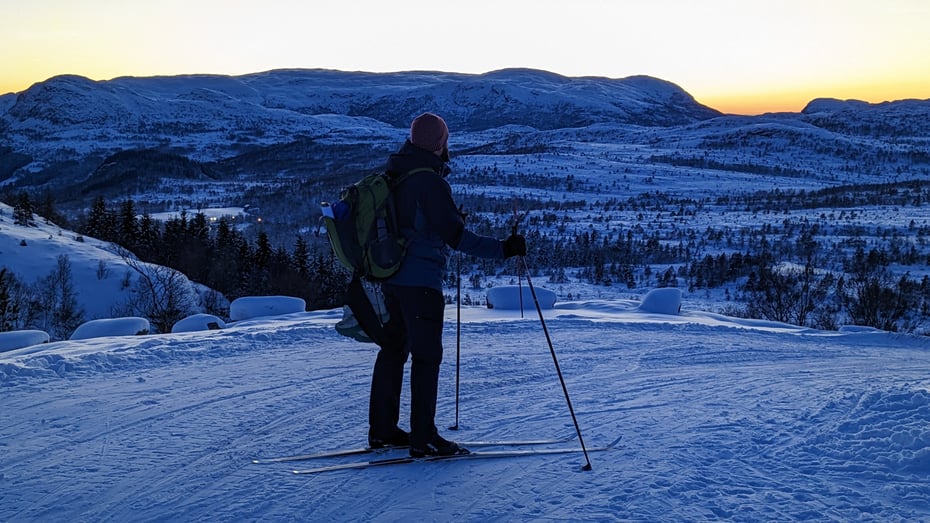 Tymur fra Dugnad som språkpraksis forteller om forberedelser og opplevelser etter livets første skitur på egenhånd.