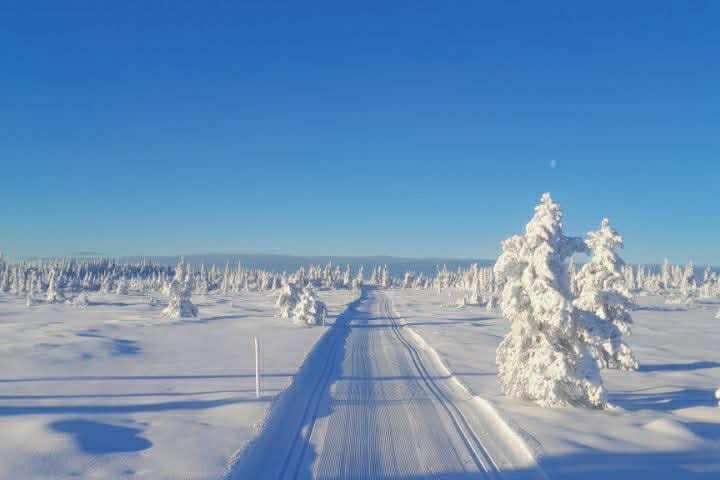12.12: Det er fine skiforhold fredag, men drømmeforholdene fra tidligere i uka påvirkes nå av mildværet. Men hovedbudskapet for helgen er at det går fint å gå i alle løyper som er kjørt opp - men vær litt obs på at det kan være noen bløte flekker på myrene.