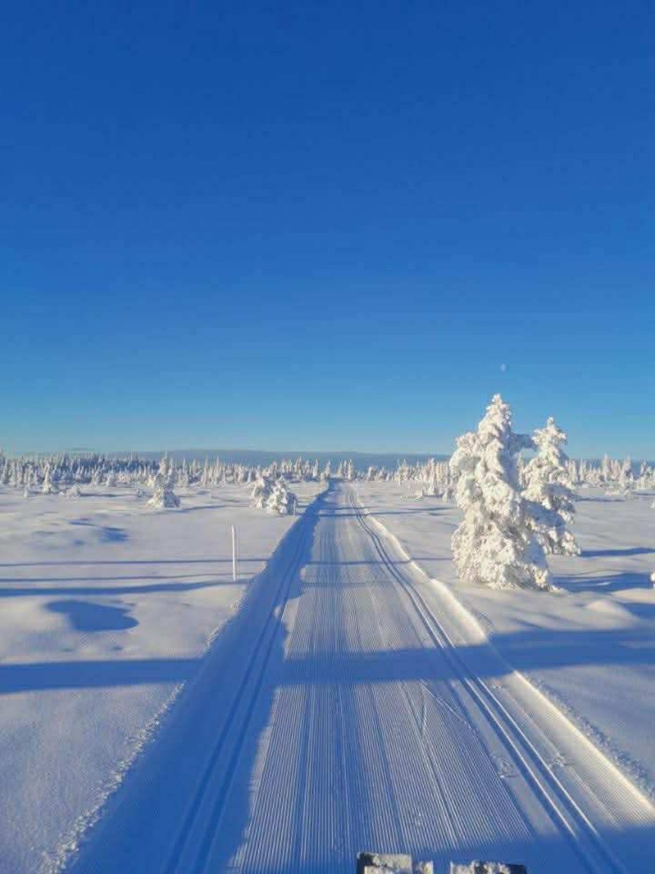 12.12: Det er fine skiforhold fredag, men drømmeforholdene fra tidligere i uka påvirkes nå av mildværet. Men hovedbudskapet for helgen er at det går fint å gå i alle løyper som er kjørt opp - men vær litt obs på at det kan være noen bløte flekker på myrene.