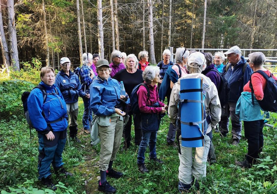 I alt 28 glade turgåere møtte opp og ble fordelt på tre grupper utfra egne valg og forutsetninger for gjennomføring. I et praktfullt høstvær med sol fra klar himmel, litt vind, ledet Hans Martin og Laila den største gruppa på 18, gjennom stier som varierte fra skogsterreng til åkerkanter og åkrer med korn som ventet på å bli høstet.