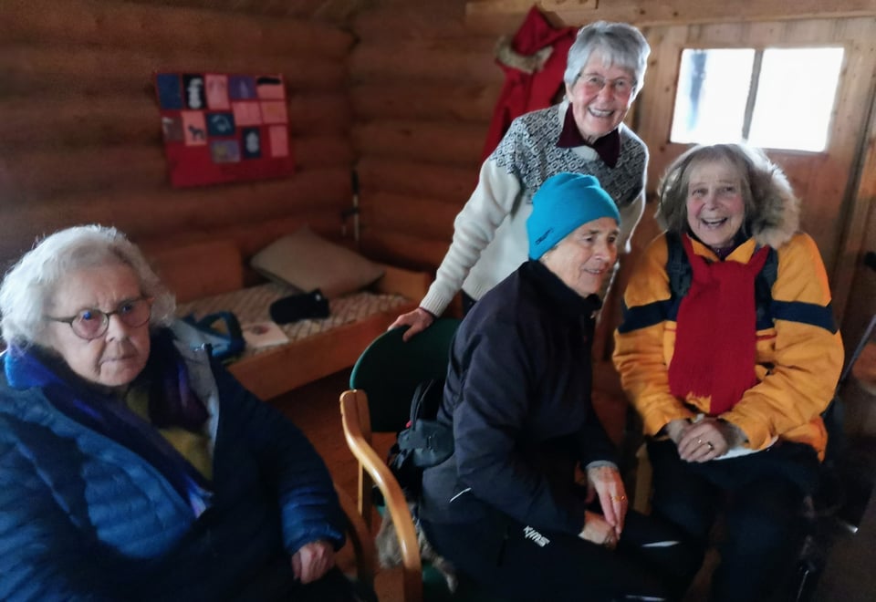 Dagens værrapport fra Hans Martin inspirerte oss: -5 gr og gode forhold! I dag skulle også Blåmyrskoia fyres opp. Det gledet vi oss stort til! Naturen møtte oss i kvitpuddersnø. Og nykjørte løyper ga oss mulighet til å velge mellom den raskeste og bratteste, den litt lengre, men med jevnere stigning – eller rundt Volltjernet! Alle mulighetene vart god prøvd i dag! Og for en gli! Ja, Marit i sitt 94. år, utbrøt på sin «prøvetur» uten ski rundt tjernet: «Neste gong ska je ha ski!» Førr ei dame!