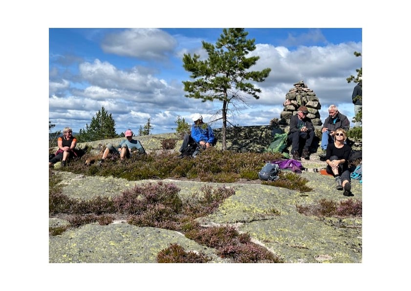 Her var utsikten formidabel i det fine sensommerværet. Etter en rast gikk turen samme vei ned igjen til bilene.