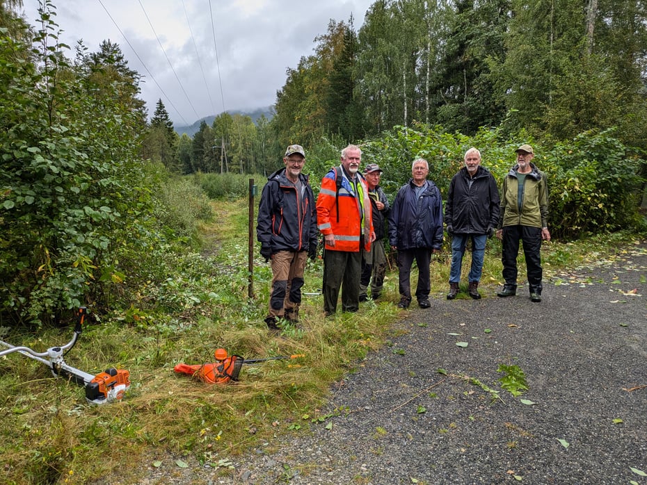 Medlemmer av Bystikomiteen hadde idag dugnad på turstien/labbeløypa som ligger vest for flystripa på Flyplassen.