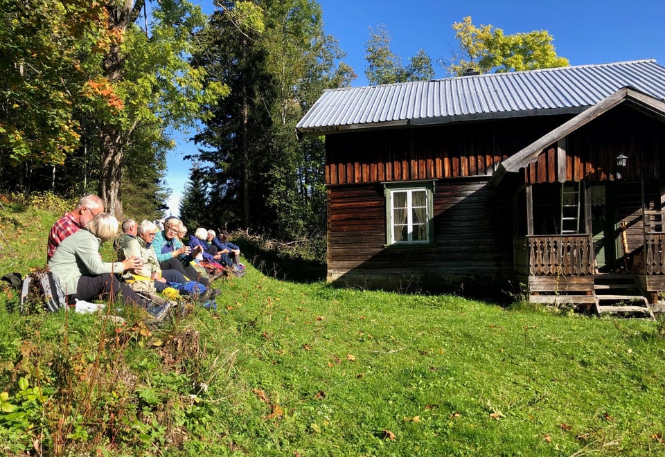 13 deltakere startet turen fra Sagvoldkroken, innafor Heistadmoen. Første passeringspunkt var plassen Skogen/Myrane, som er flott vedlikeholdt. Andre bygninger langs ruten ville nok fått betegnelsen «har potensiale» eller «oppussingsobjekt»…