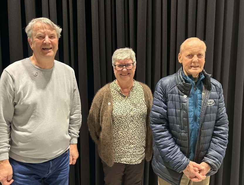 Torunn Eia, Ingunn Bårnes og Anders Nerland (Oskar Hellerud og Gunnar Nilsen var ikke tilstede) mottok dugnadsprisen 2025