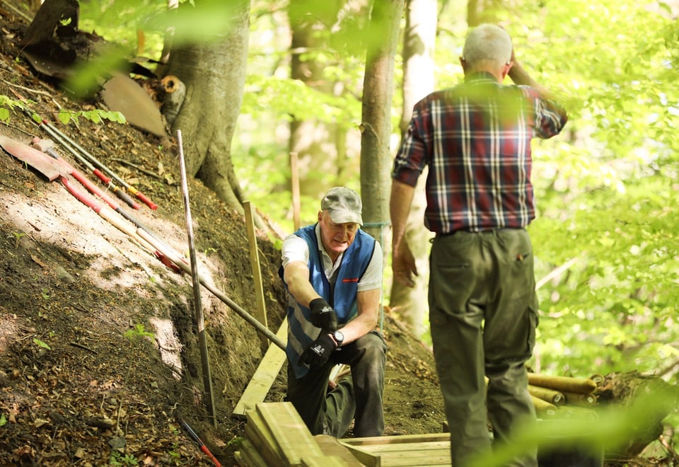 Vi hadde brukt ventetida godt til mange befaringer som ga oss godt grunnlag for å finne en trase og konstruksjon av stien som var gjennomførbar med enkle midler, ikke kostet for mye og som kunne gjennomføres på dugnad. Larvik Kommune hadde gitt oss penger til første materialinnkjøp og det meste av maskiner og utstyr hadde vi fra før. Dugnadsviljen var upåklagelig.