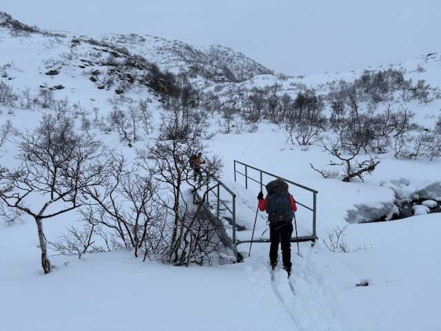 Følgende melding fra noen som gikk på ski fra Skredå helgen 5-7 mars: Det var scooter som hadde kjørt mesteparten av løypa og kvisten hadde holdt seg ganske bra, så det var lett å finne fram. På søndag var det dårligere forhold. Det var mye overvann pp alle vann, og mye steiner og lyng som stakk opp i scooterløypa. I det bratteste partiet på vei ned fra høyden til Skreådalen var det så stor vannføring i det som trolig var en bekk at deler av løypa var helt borte. Vi tviler på at det er skiføre der lenge videre med mindre det kommer betydelig påfyll av snø.