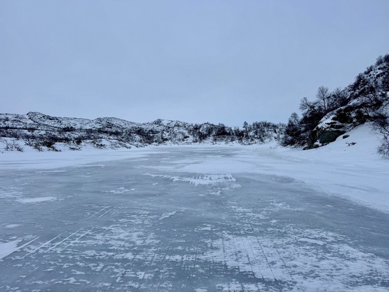 Litt krevende forhold for fottur, men det var folk inn hit nyttårsdagene. Variert føre med dype snøfenner noen steder og avblåst andre steder. Måtte tidvis vasse i dyp snø, og litt krevende forhold for fottur. Enkelte steder var det is skjult under snøen og veldig glatt.