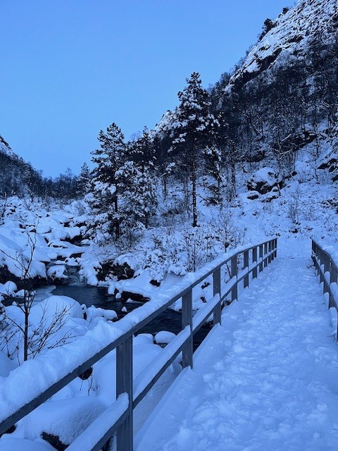 Forhold for fottur fra både Bakken kai og Songesand. Kan være glatt og isete.