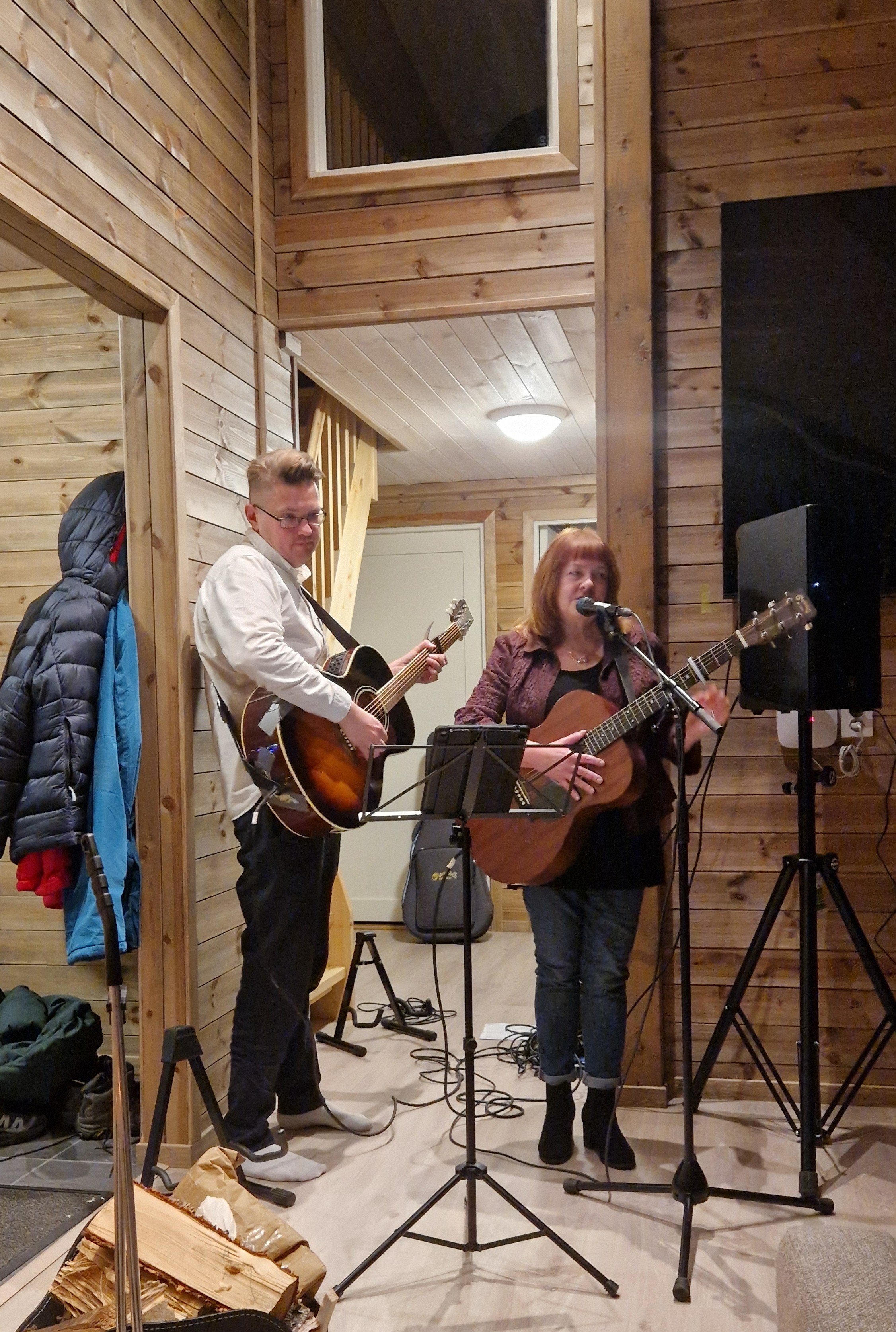 Wanja Kvalnes og Vegard Marvik underholdt med tekster av Liv B. Saltnes, tonesatt av Wanja Kvalnes. De satte en veldig fin stemning på arrangementet. Denne duoen kan også oppleves på Troms Turlags Goldafestival som arrangeres 14.-16. august 2026, på Goldahytta i indre Troms.