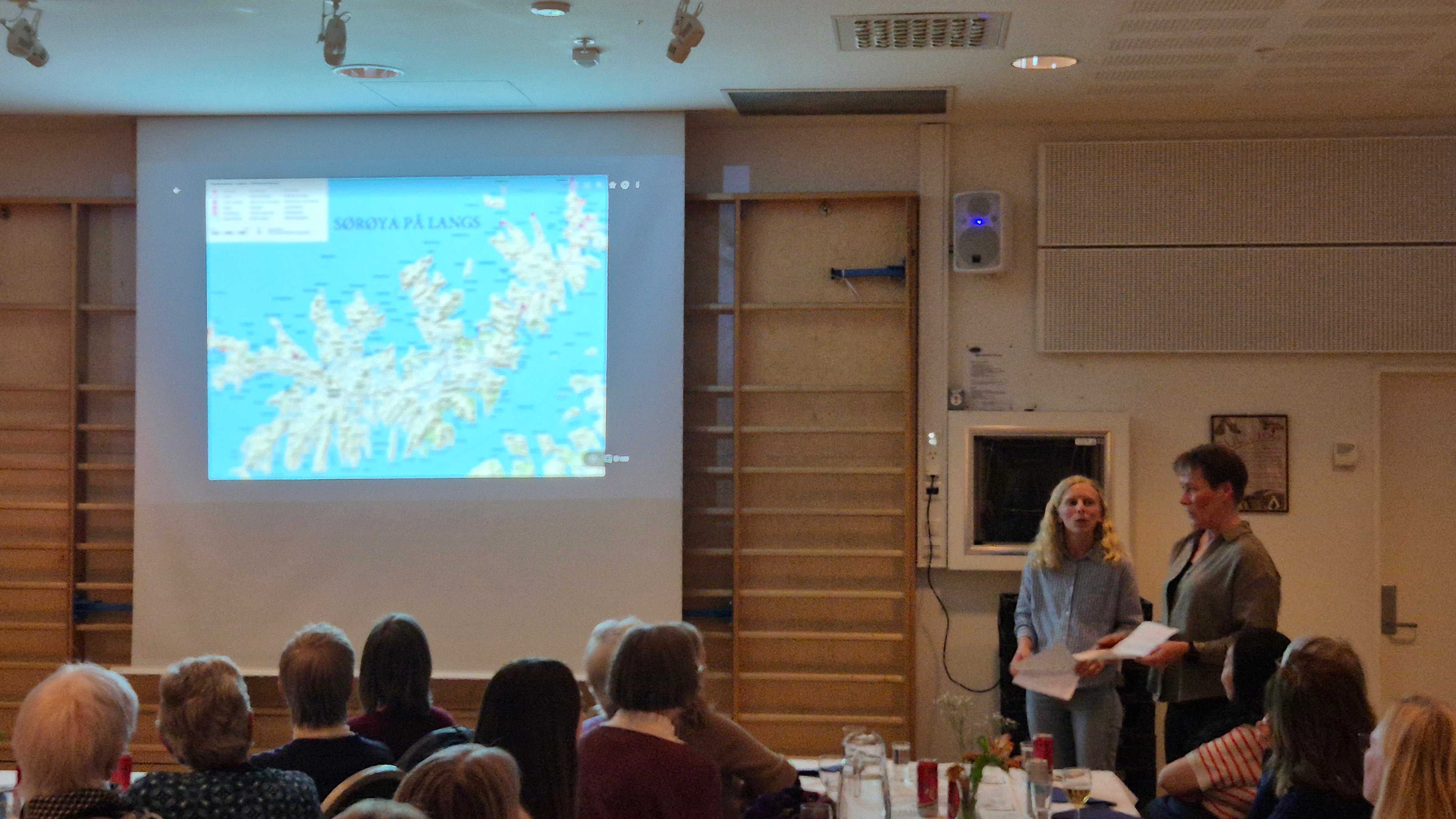 Kveldens høydepunkt var bildeframvisning og foredrag om "Sørøya på langs" ved turleder Monica Mikalsen og Connie Oppedal Selstø fra turlagskontoret. De gikk begge denne turen i fjor sommer, og lokket med flotte bilder fra denne grønne og frodige øya. Monica var turleder på en fellestur i samarbeid med Alta Turlag og Hammerfest Turistforening, og Connie gikk i lag med sin kjære. Turen og øya anbefales på det varmeste.