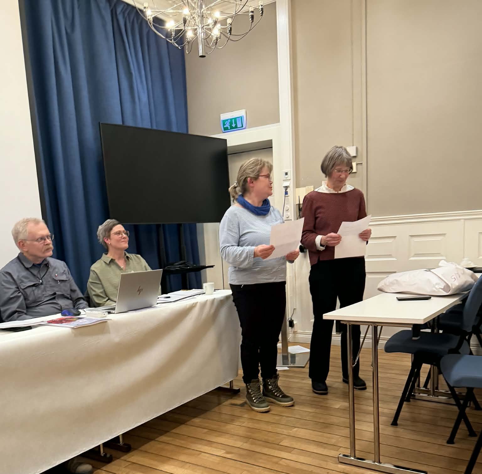 Svanhild Dalberg og Eli Moksnes Furu fra valgkomiteen presenterte valgkomiteens innstilling. Svanhild gikk ut av valgkomiteen, som hun har ledet det siste året, og Ellen Marie Ingulfsvann ble valgt inn for tre år.