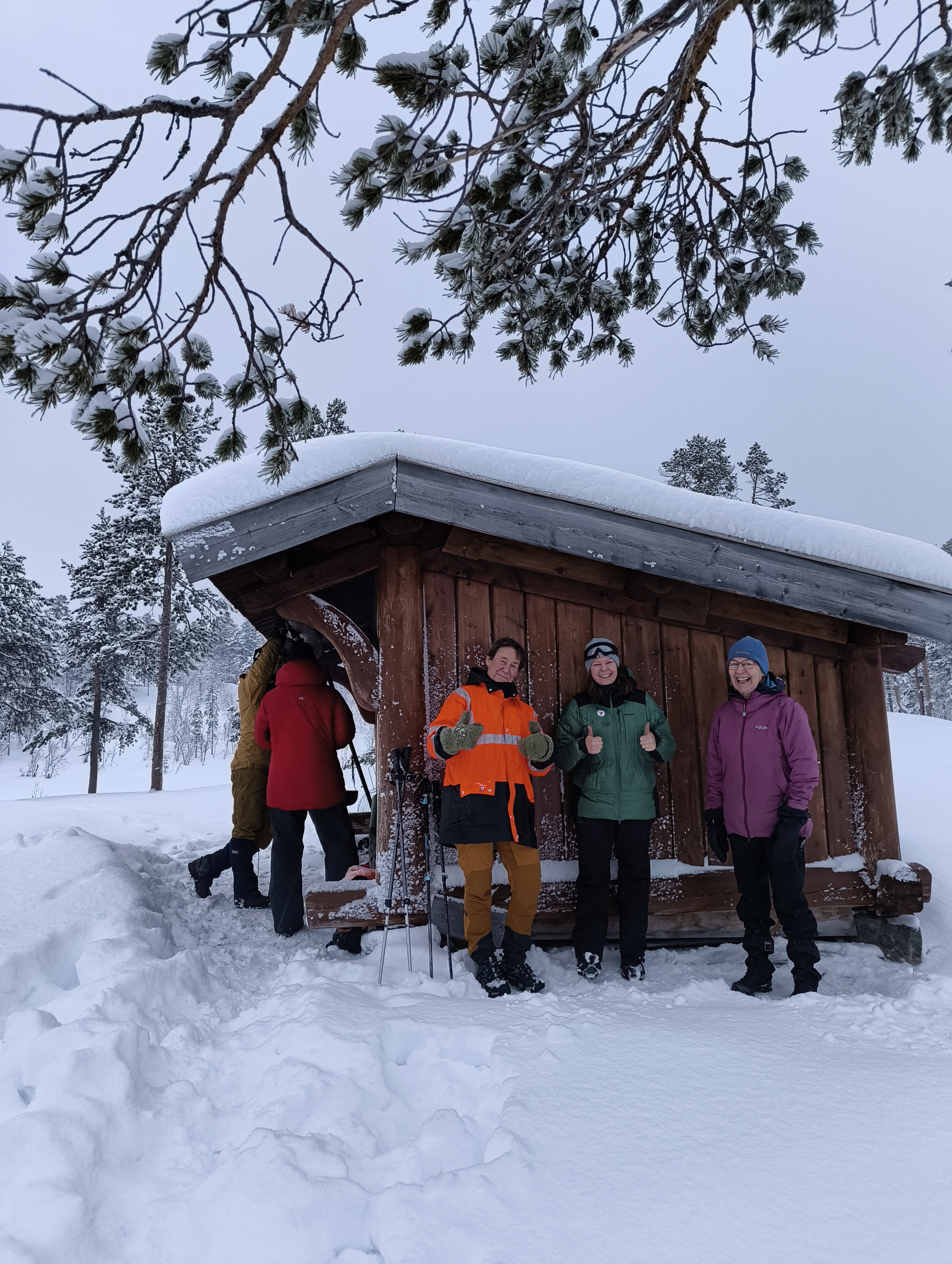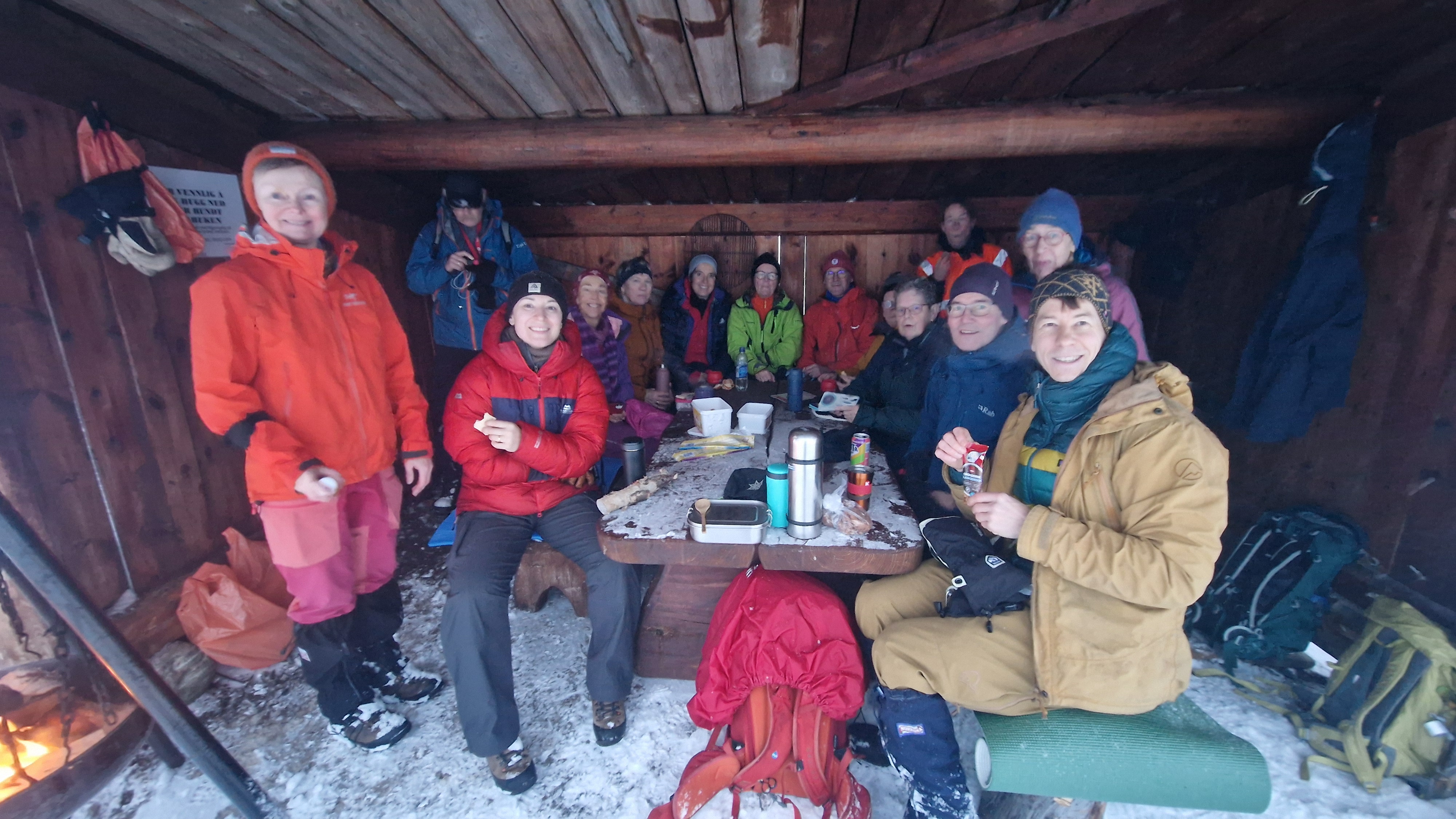 På søndagen dro noen hjem tidlig, mens andre valgte å gå på ski. En stor gruppe tok beina fatt og gikk til gapahuken ved Tømmertjønna. Åshild bidro som kjentkvinne og hadde med både ved og hjemmebakte lefser. Kaffe ble kokt og stemningen var generelt veldig god i det tette snøværet.