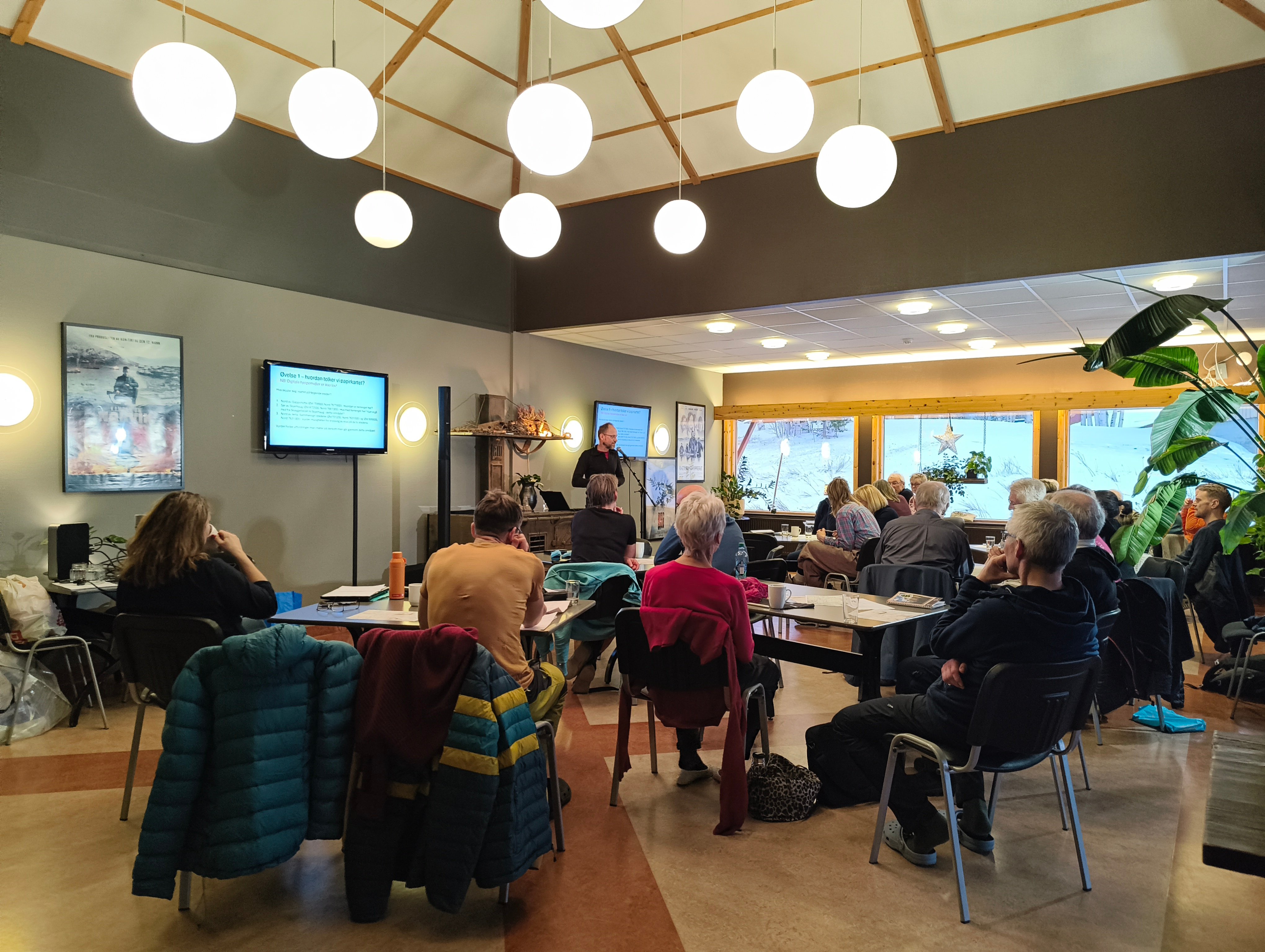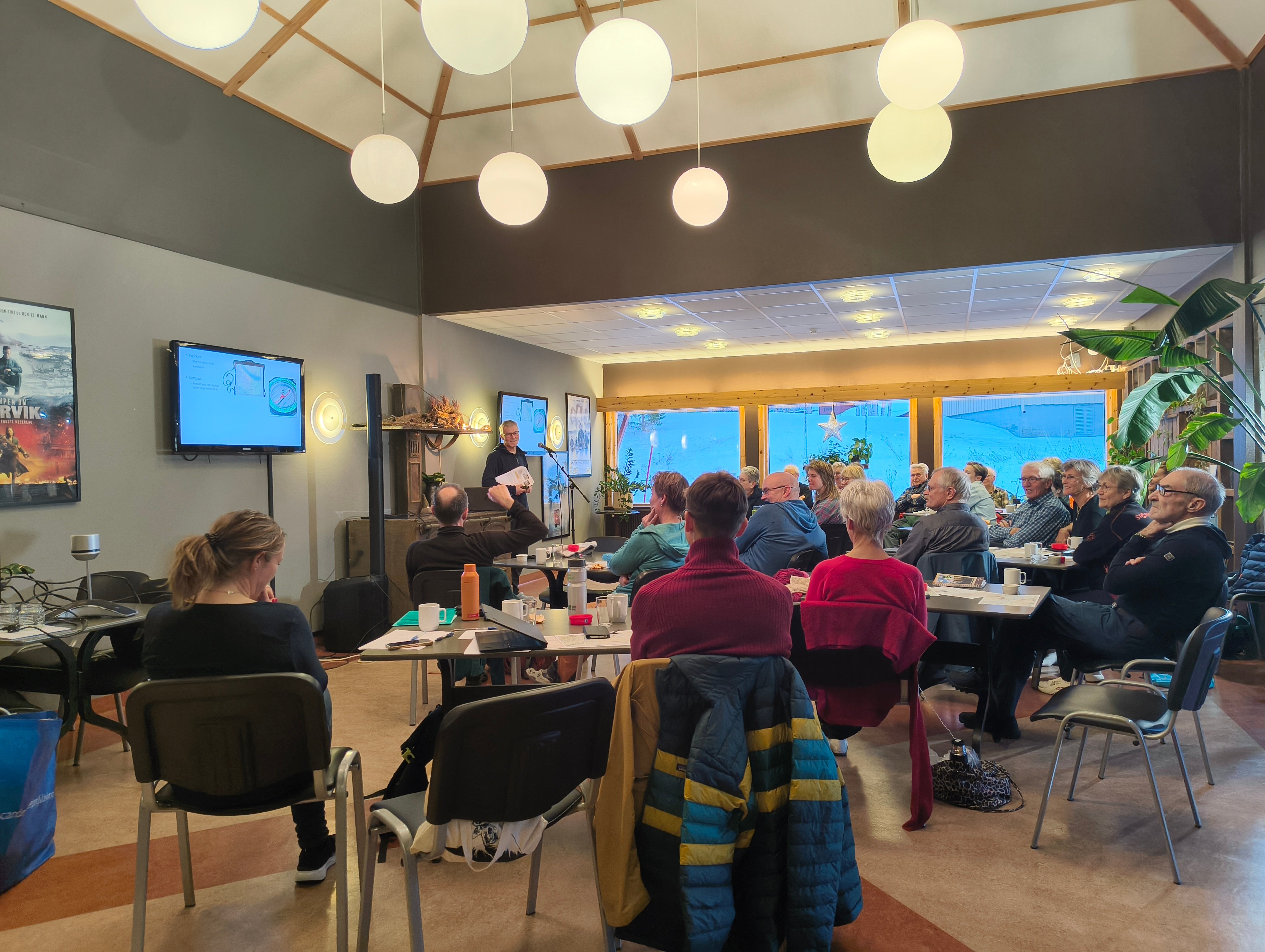 "Tøy og bøy" med Monica på parkeringsplassen var startskuddet for lørdagen. Daglig leder i turlaget Lin Olsen tok oss gjennom året som gikk, nyheter og tiden fremover i Troms Turlag. Etterfulgt av våre flinke forelesere Harald, Tore, Assia og Espen som holdt innlegg om temaer som geologi i Troms, hvordan planlegge trygge vinterturer ved hjelp av verktøyet KAST, kart versus virkelighet og digitale verktøy og navigasjon. På slutten av dagen planlagte Tromsø-turlederne turer for vinter og vår, mens turlederne i Senja Turlag fikk en innføring i digitale systemer.