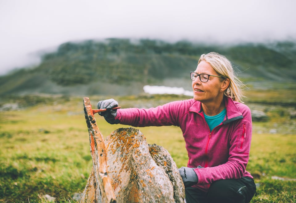 Svanhild Dalberg i sving under dugnad på Ringvassbu. Foto: Ellen Marie Ingulfsvann.