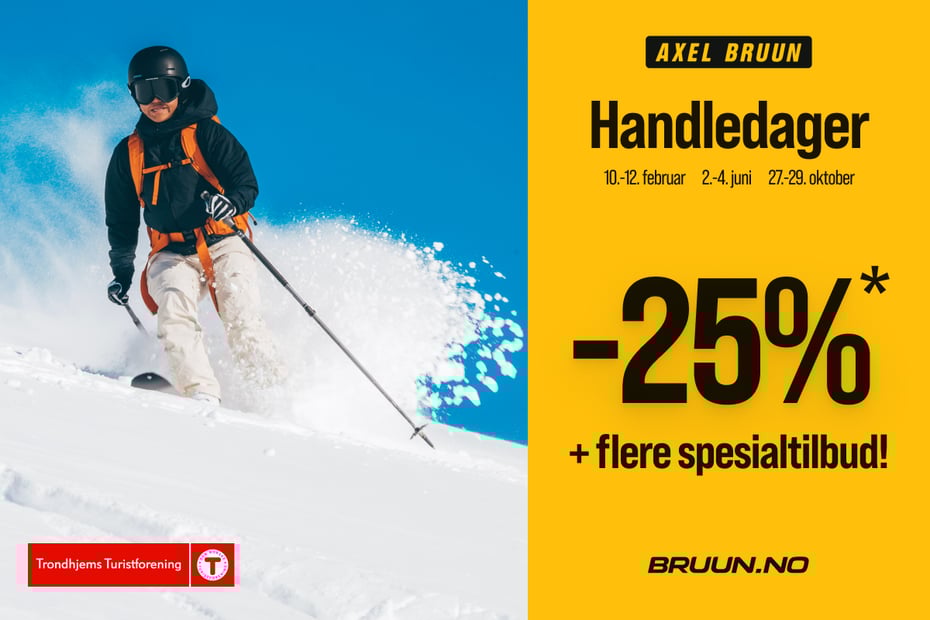 Trenger du nytt utstyr til turene dine? Som medlem i Trondhjems Turistforening får du eksklusive rabatter hos vår turpartner Axel Bruun Sport.