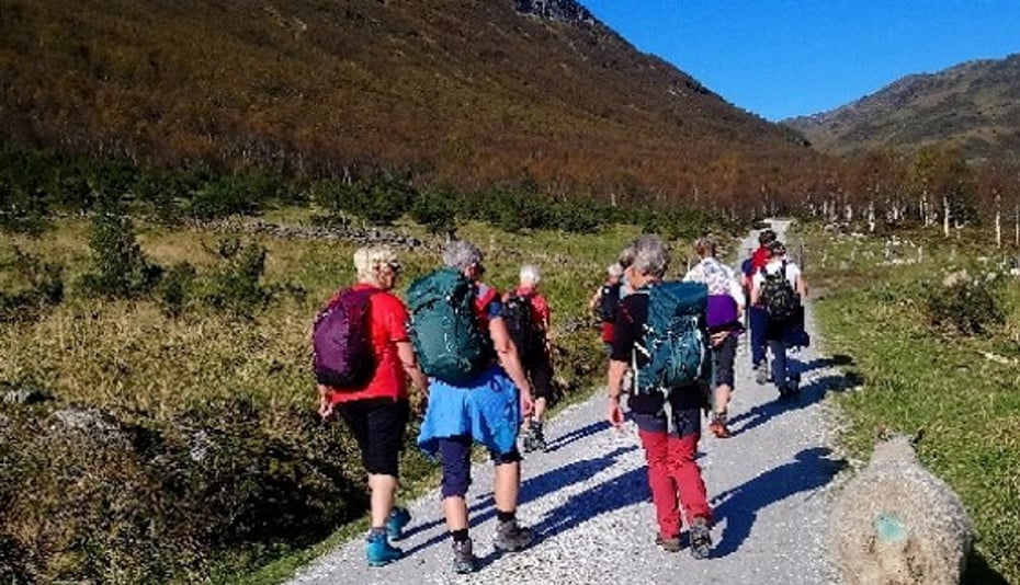 Turen vart no lagd om, og me gjekk bilvegen utover Brekkedalen. God matpause på Muløyane før me gjekk eit stykke vidare i retning Kinnarbakken. Retur same vegen.