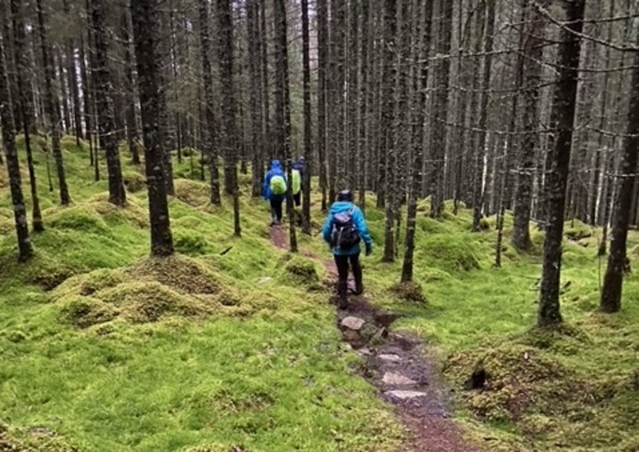 Turen starta på hedleberget på Møen og gjekk på sti gjennom skogen og vidare på veg til Sleasteinen.