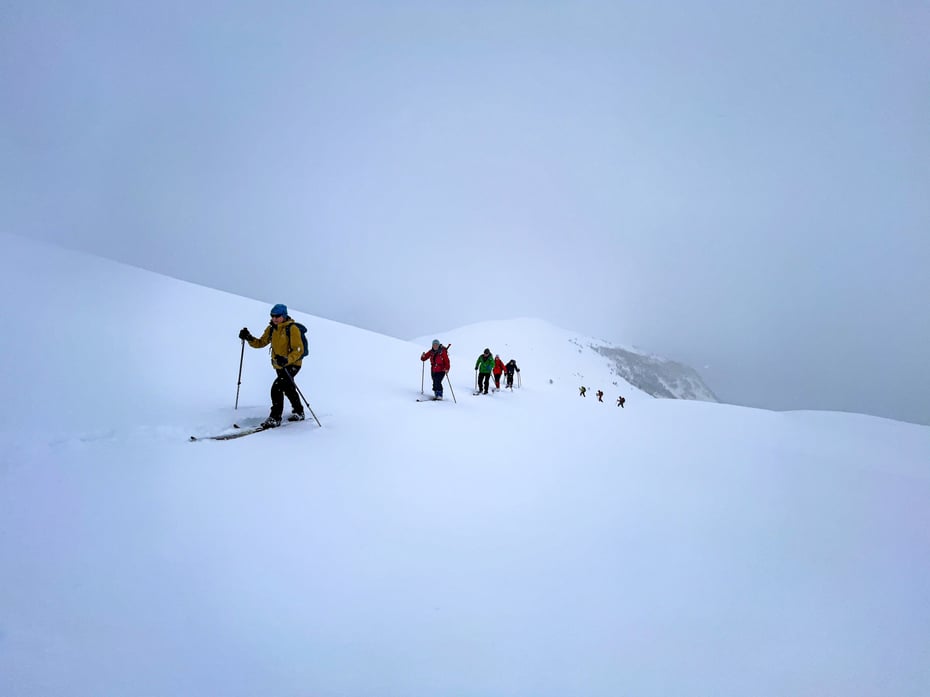 Fyrste nedskriinga til Mykjedalsvatnet gjekk veldig bra og vêret byrja å letta meir. Me gjekk innom toppen av Flatafjellet slik at eit par deltakarar fekk sjekka inn på Fjelltoppjakten. Nedskriinga frå Flatafjellet var heilt formidabel, perfekt føre og alle storkoste seg ned bakken. Liten stopp før ein tok fatt på dagens siste bakke opp til Nipene. På Nipene letta det meir og sola glimta til gjennom skyene, slik at me fekk nyta utsikta. Siste delen av dagen vart heilt magisk og alle storkoste seg ned dei siste bakkane til Engjaland.