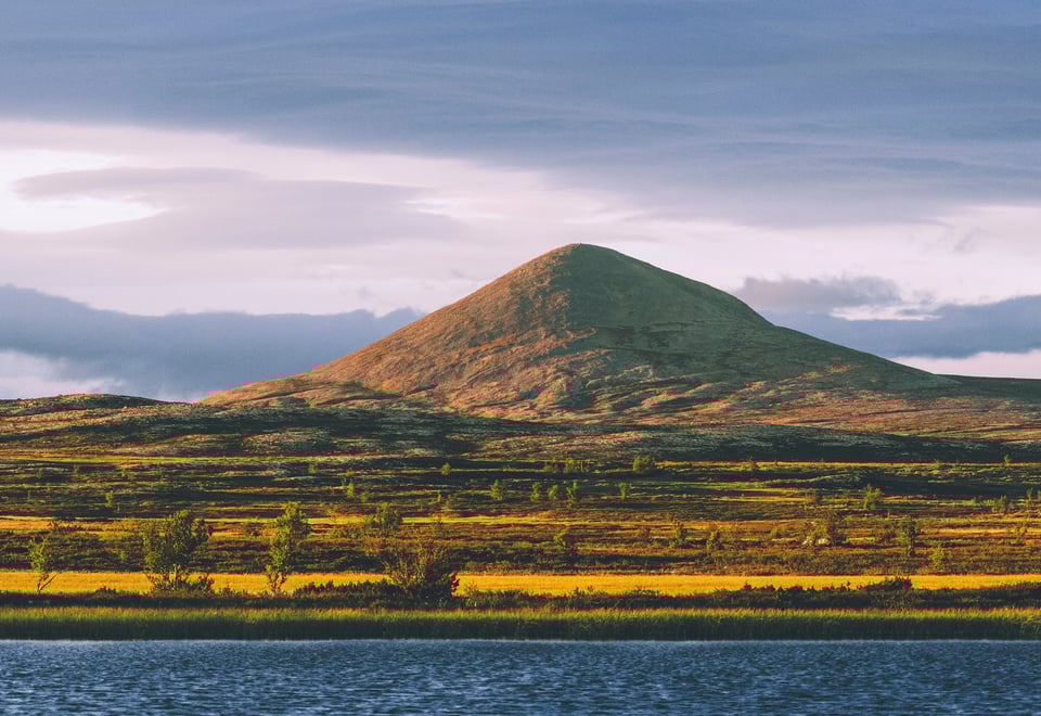 If you spent the night at Hageseter lodge, the day starts with a gentle climb to Hjerkinn Fjellstue lodge. From there, follow the old king's road across Hjerkinnshøe mountain to Grønbakken. At Grønbakken, cross the E6 road and the railway line and follow the marked trail up Stroplsjødalen valley, on the south side of the rivers Kaldvella and Stropla. There is a 17-km gentle climb from Grønbakken to Reinheim lodge (1,340 m.a.s.l.).