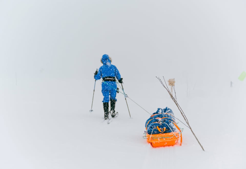 Du betaler i resepsjonen på Finsehytta før du får utlevert pulk med drag og sele.