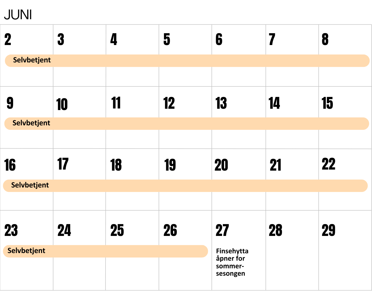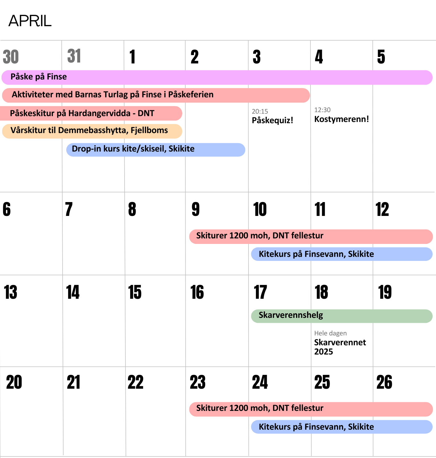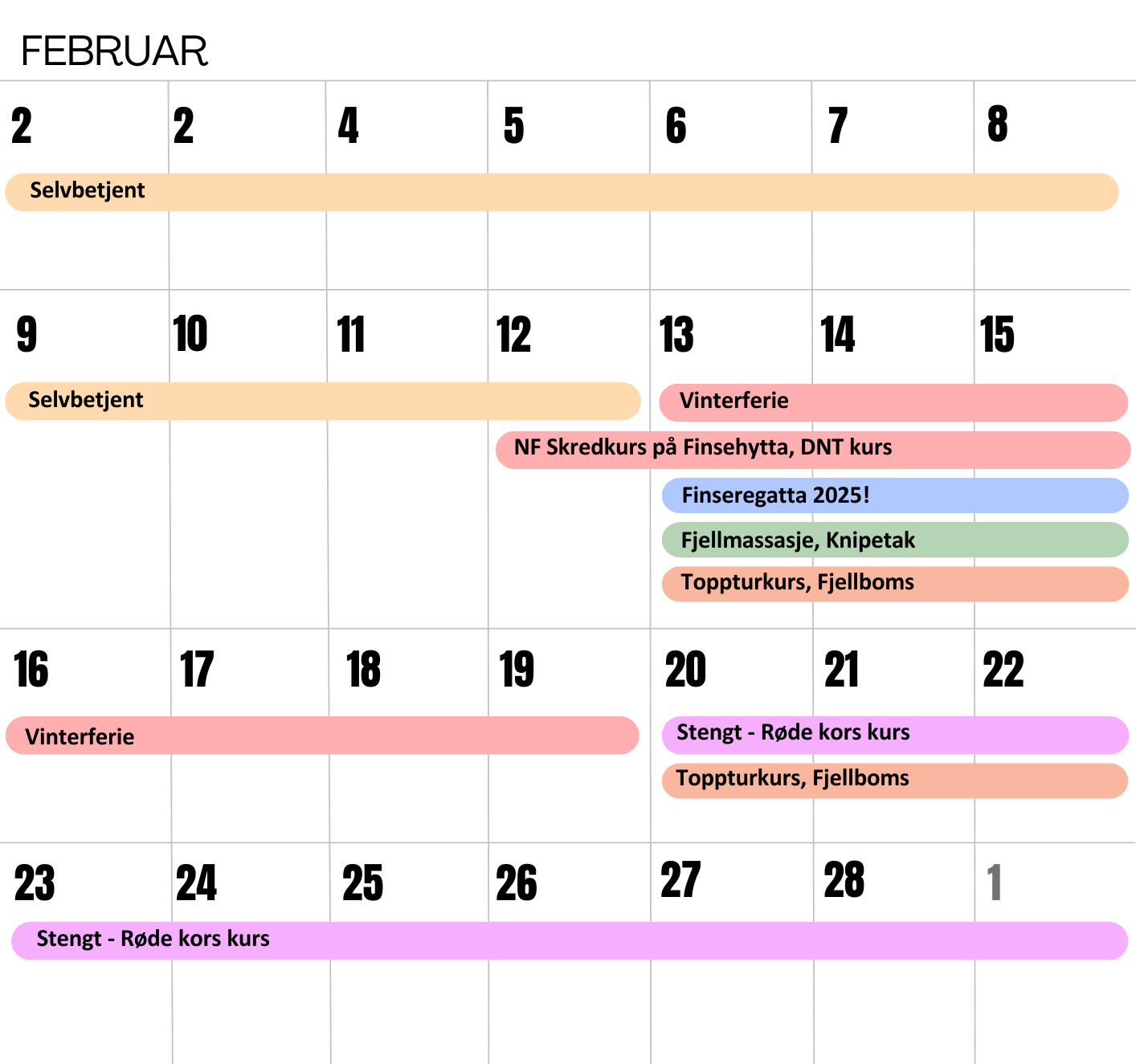 Her finner du datoen for alt som skjer på Finsehytta i løpet av sesongen!