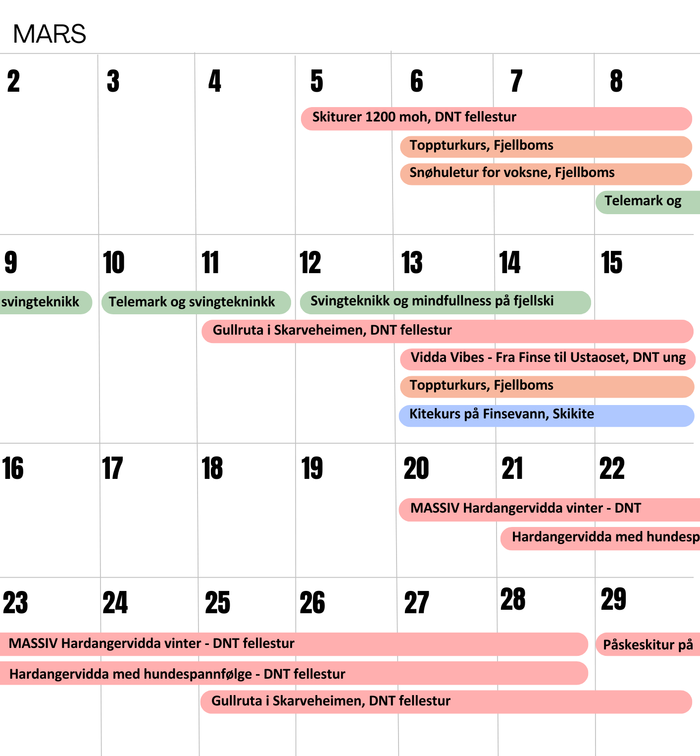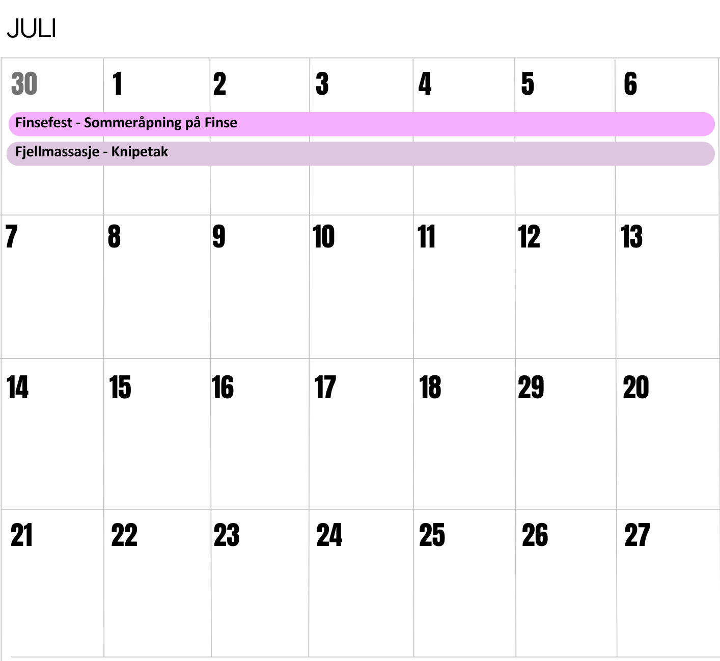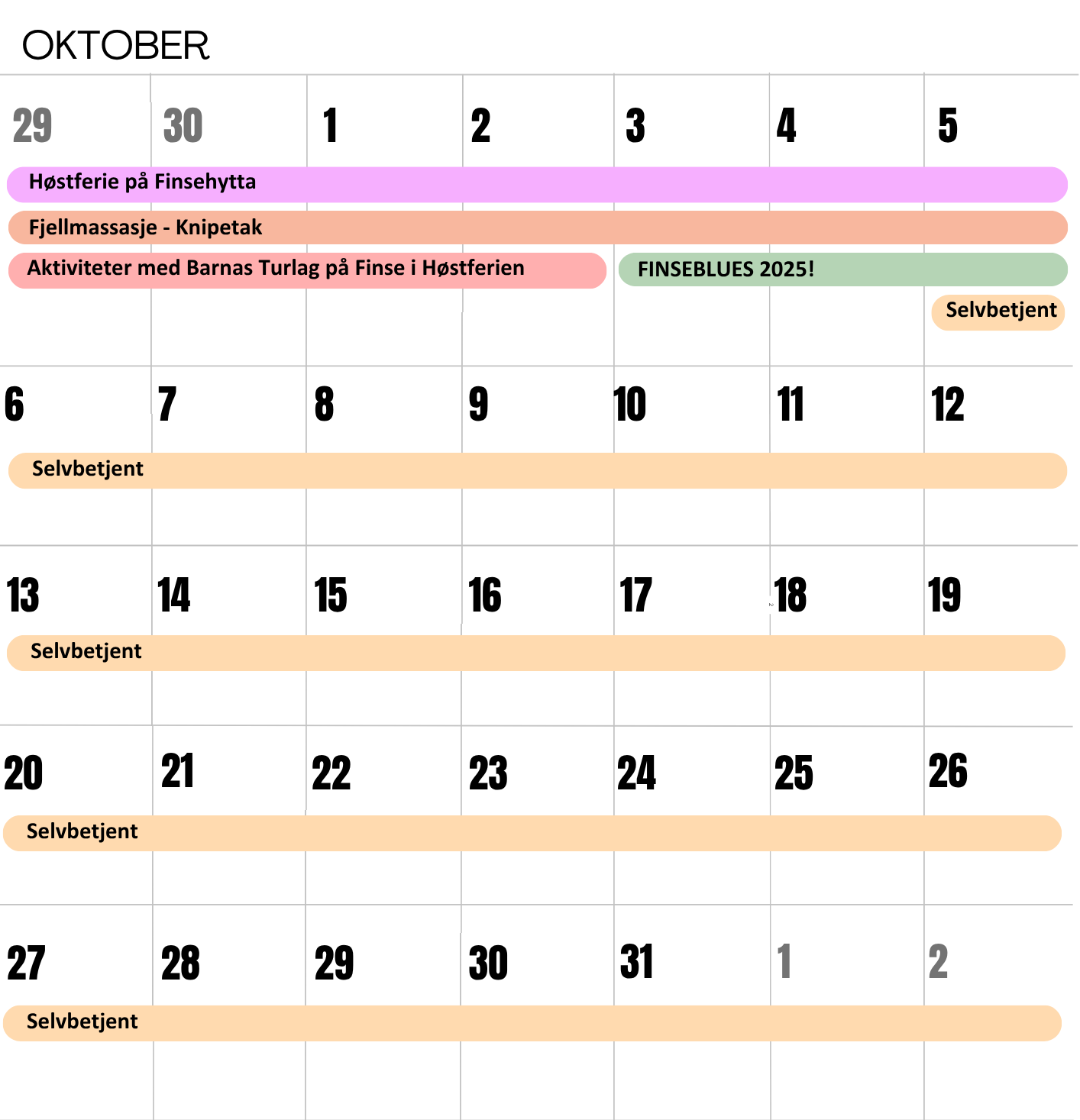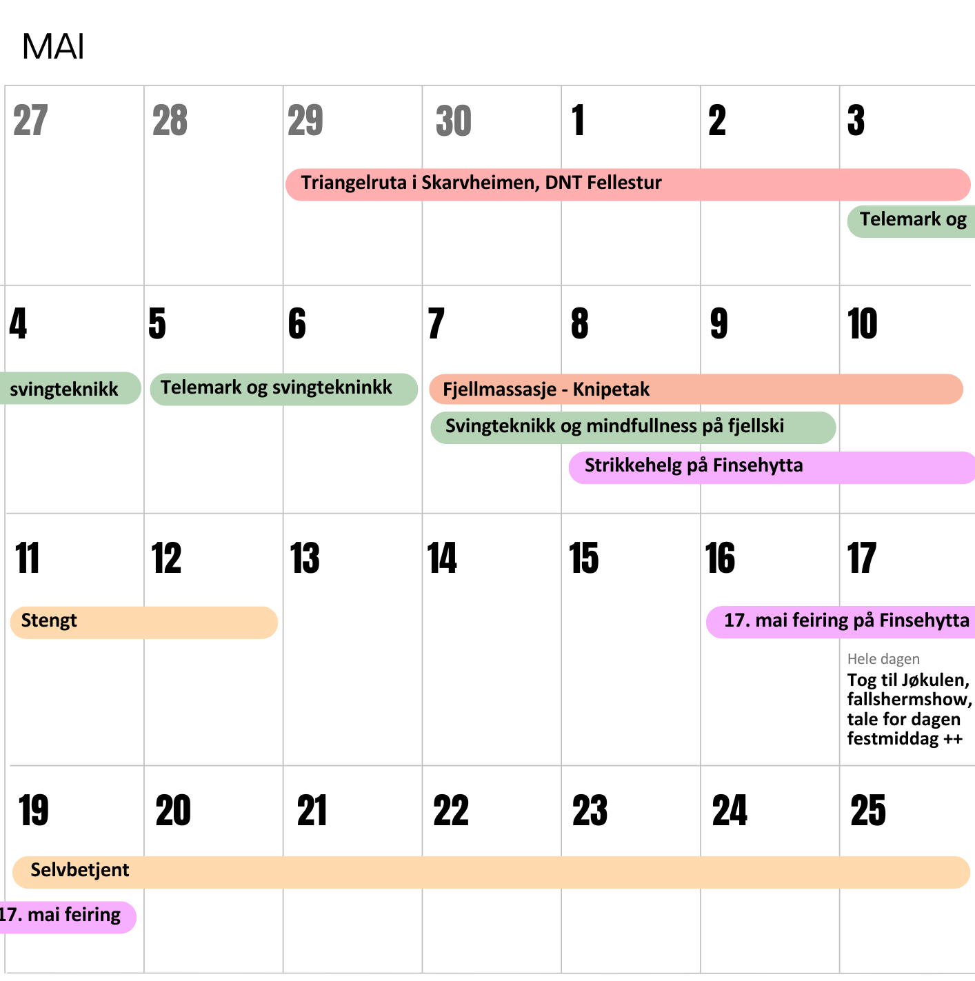 Her finner du datoen for alt som skjer på Finsehytta i løpet av sesongen!