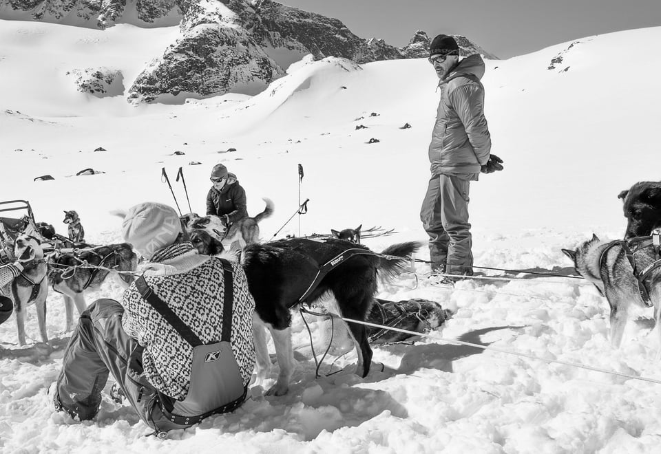 I stedet for å tråkke i mer eller mindre flatt terreng i mange kilometer eller mil inn til foten av stortoppen du drømmer om å bestige, så hopper du på hundesleden og lar firbeint turfølge gjøre hele jobben. Menneskets beste venn har sjelden fortjent navnet sitt mer, og oppturen er ikke over: På selve skibestigningen får du følge av tindeveileder Sondre Kvambekk, en av landets fremste skiguider.