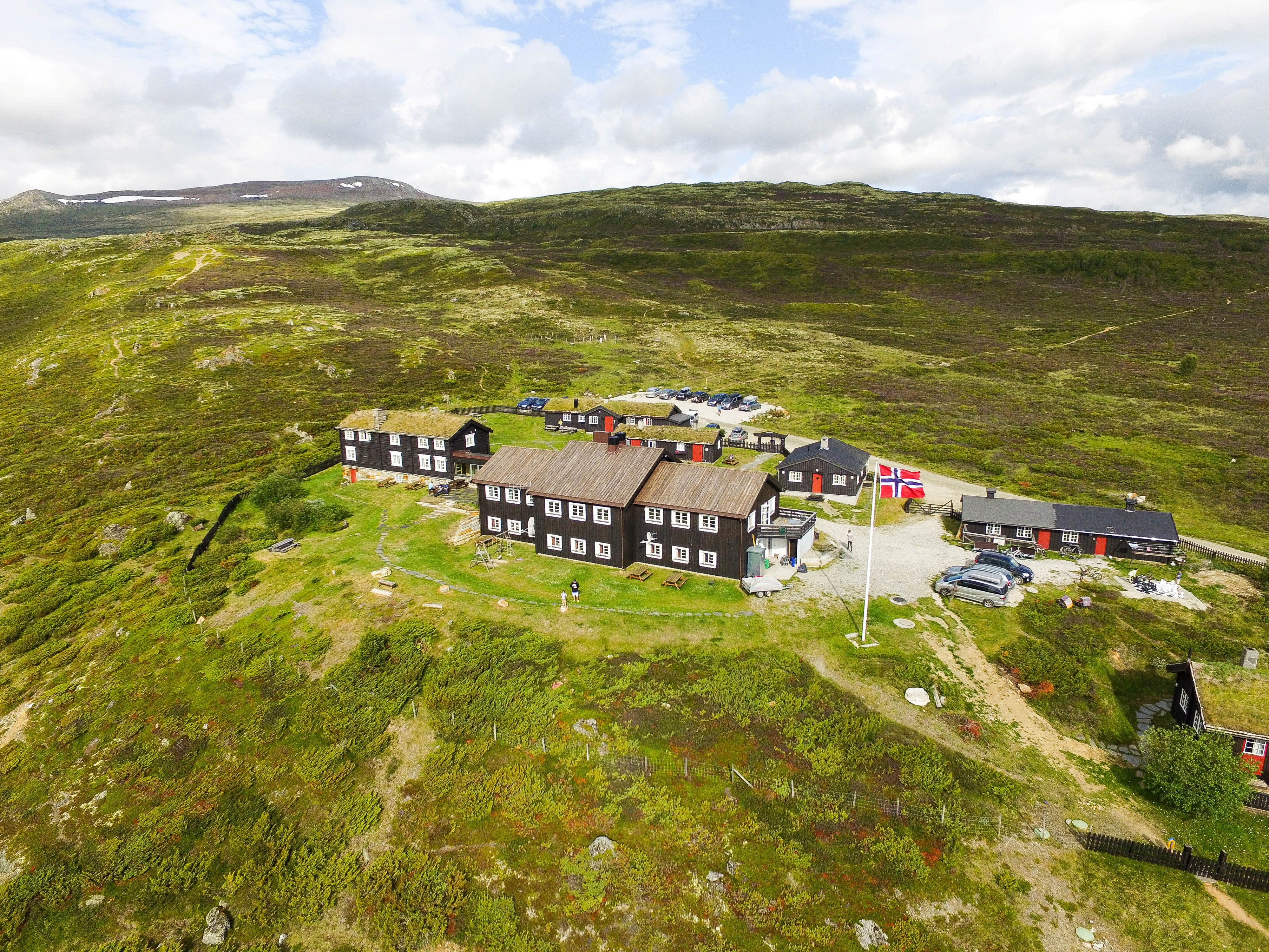 From its beautiful location with cultural buildings, Grimsdalshytta affords a panoramic view of the Rondane mountains.