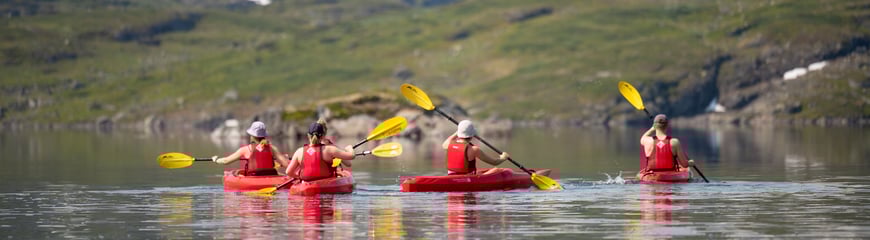 En tur på vannet i kajakk, kano eller robåt er et utmerket alternativ til fotturer om sommeren. Fra vannet kommer du tett på naturopplevelsene med store elver, nydelige dalfører og bratte fjellsider som står i stor kontrast til det krystallklare vannet.