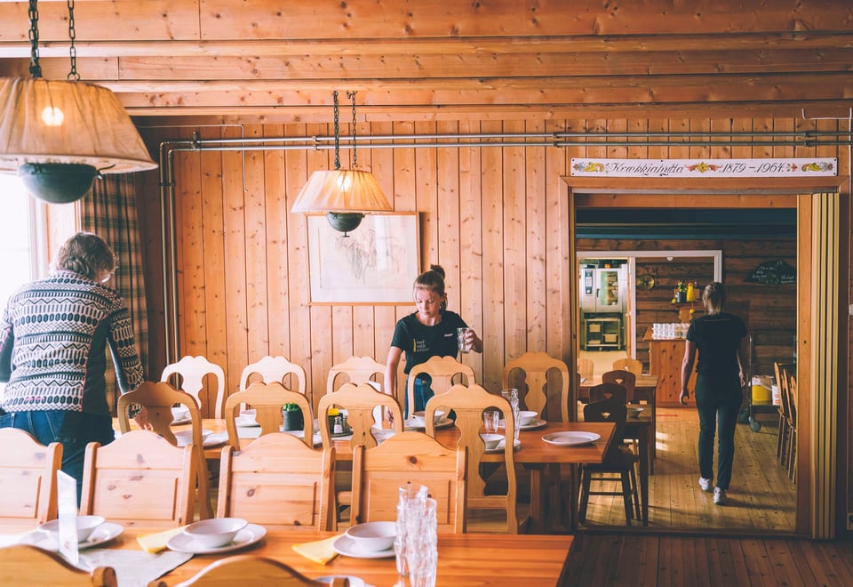 Spisesalen på Krækkja selve er hjertet i turisthytta. Krækkja har hatt mange byggetrinn, men dette rommet er godt bevart. Spisesalen er den gamle hytta som ble bygd i 1878, det vil si at i dette rommet er det servert mat i over 140 år.