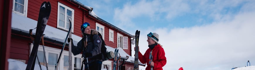 Å overnatte på en betjent DNT-hytte gir en trygg og komfortabel opplevelse, hvor man kan møte andre turgåere i et sosialt miljø. Hytta er godt vedlikeholdt, og de ansatte sørger for både matservering og varme til peisen, som gjør oppholdet ekstra koselig - spesielt på vinterstid. Etter en lang dags tur er det et perfekt sted å hvile, med gode senger og en avslappende atmosfære som gjør det lett å lade opp til dagens neste skitur. Dte er ofte hyggelig informasjonsutveksling på hytta med andre gjester, så du finner inspirasjon og får svar på spørsmål du lurer på ved de ulike dagsetappene.