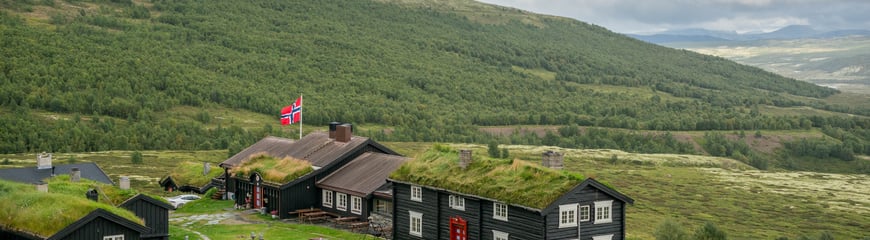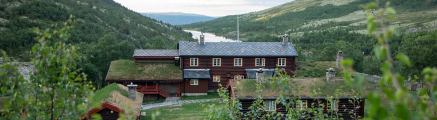 From its beautiful location with cultural buildings, Grimsdalshytta affords a panoramic view of the Rondane mountains.