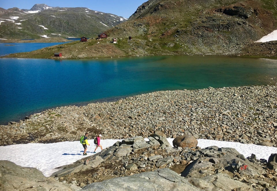 This section begins along the southern shore of Såråsjávrre and follows the shoreline for 4 kilometers to the Norwegian border. This section of the trail is somewhat poorly marked, and the marshes are not bridged. Further on, the trail is marked with T-signs and easy to follow. You'll need to cross a river fed by glacial meltwater from the Sulitjelma massif to the south. The bridge over the river is destroyed, so you'll have to ford the river closer to Sårjåsjávrre. The trail then continues along the southwest side of the lake, rounding the base of the mountain before reaching the southeast end of Bajep Sårjåsjávrre. The name means the higher-lying Såråsjávrre and is located 4 meters higher. In the final part of the stage, the trail follows the shoreline to the Sorjus cabins.