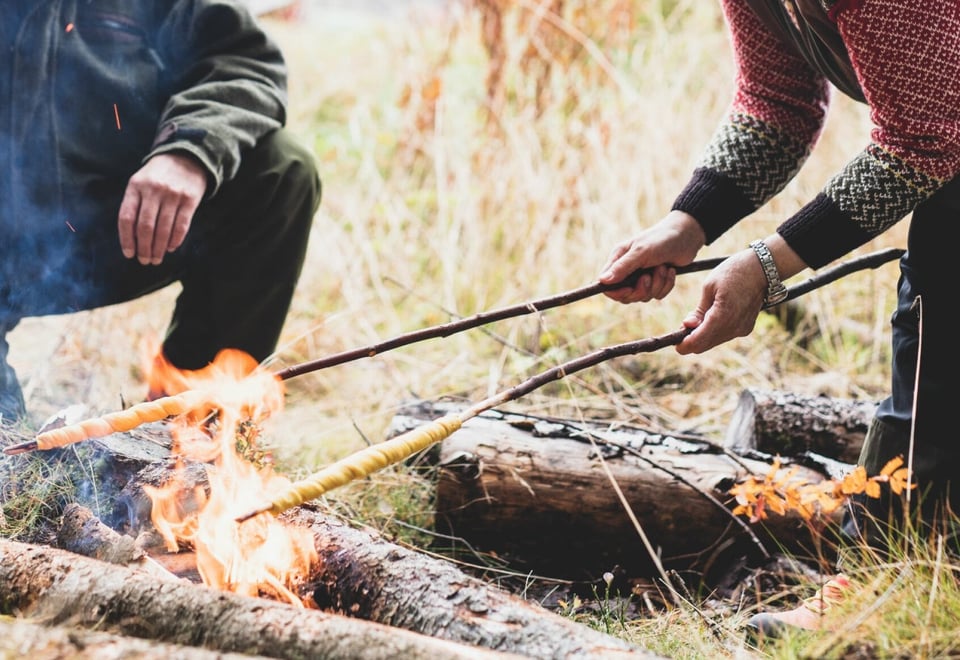 - Fyr et lite bål. Det er vanskelig å lage mat på for stor varme.