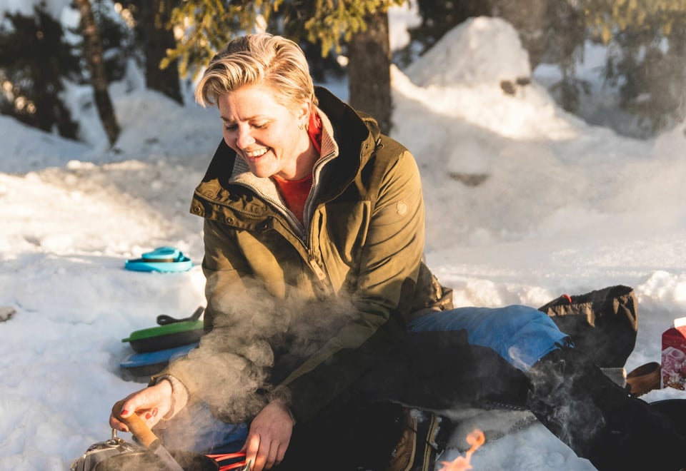 På tur i kulda fyller utemat-blogger Tonje Fånes Aaring termosene med varm restemat og krydret melk